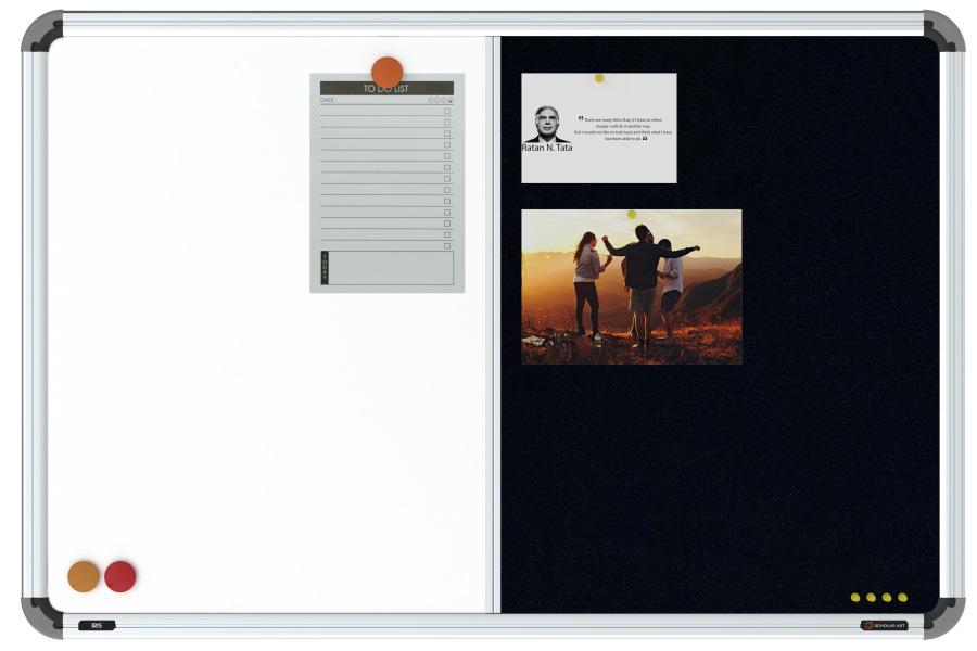 Customers can also buy combination boards online on major e-commerce platforms like Amazon and other stationery portals. All Scholar Art® Combination Boards i.e. Whiteboard + Pin-up Board or Whiteboard + Chalkboard are manufactured using advanced production techniques and high-grade materials to ensure consistent quality, durability, and user satisfaction.