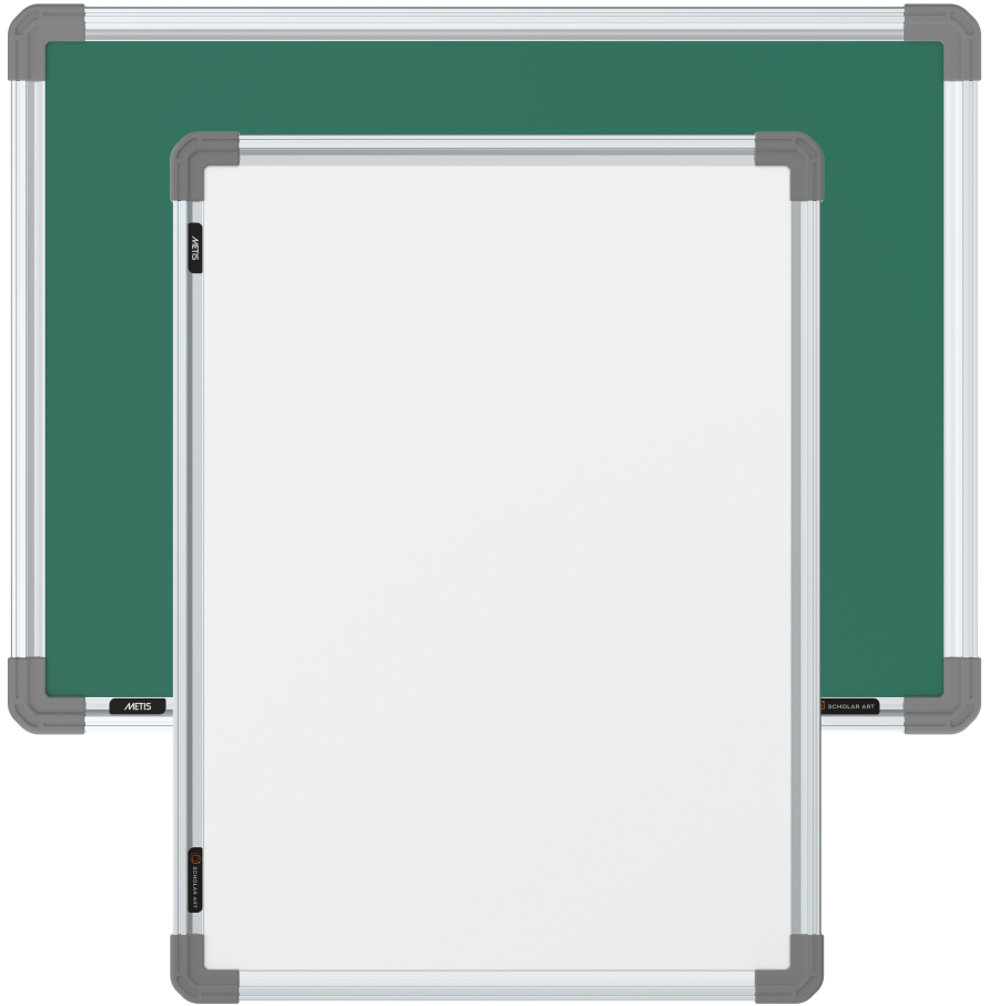 Scholar Art® Double Side Writing Boards offer the perfect blend of functionality, space-efficiency, and cost-effectiveness. These 2-in-1 whiteboard and chalkboard solutions are thoughtfully designed with two distinct writing surfaces – a premium white HPL surface on one side for dry-erase markers, and a premium green HPL surface on the reverse side for chalk writing. Ideal for homes, offices, classrooms, and coaching centers, these double side boards maximize writing area without occupying additional wall or floor space.