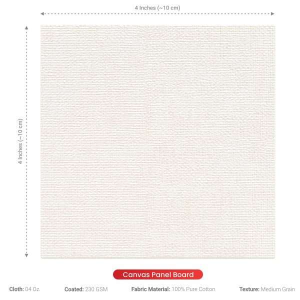 Each Cotton Canvas Panel is manufactured by engineered mounting of a 100% natural cotton canvas onto a rigid MDF (Medium Density Fibreboard) core, to give you an absorption-free, warp-free & rigid painting surface. Our Canvas Panel Boards are available in two primed fabric variants – 04 Oz 230 GSM (Hobby Series) and 07 Oz 340 GSM (Artist Series). This allows hobby artists, students, artists and professionals to choose a canvas panel that best fits their requirement.