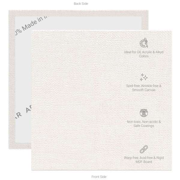 We use proprietary coating techniques along with safe, non-toxic & globally approved chemicals to make an acid-free titanium acrylic gesso, and double-prime our canvas fabric with it. An archival quality painting surface with a medium-grain texture allows the brush to glide smoothly, holds the paint together and facilitates effective layering, ultimately giving you a seamless painting experience. So, go ahead and start your next painting project with our premium-quality Canvas Panel Boards.