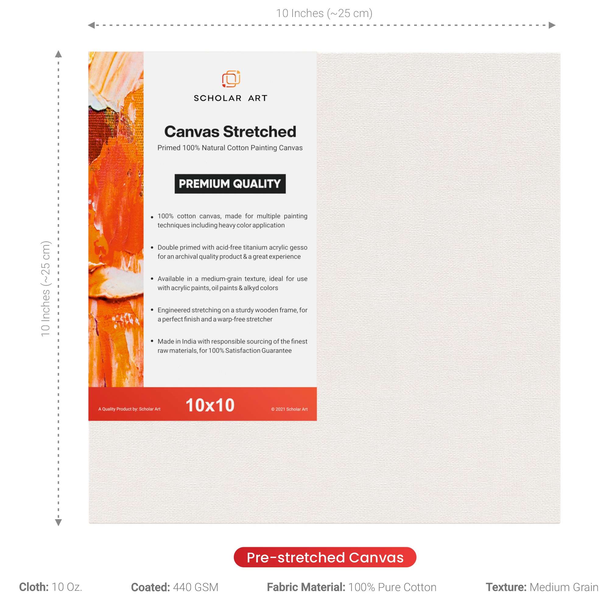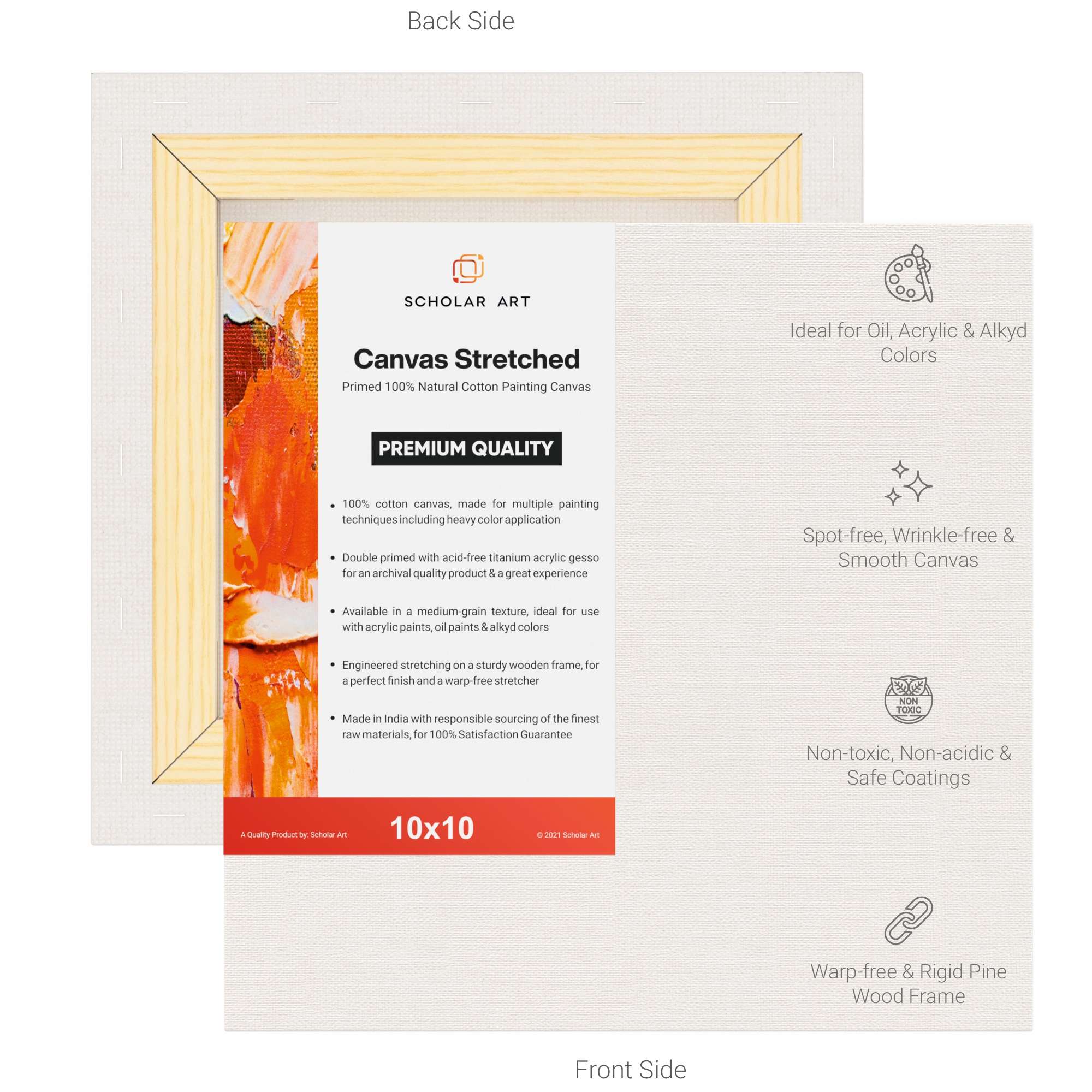 Scholar Art® Canvas Stretched are all-media painting pre-stretched canvases that provide an exceptional medium to inspire creativity at every stage of the painting process for artistic mastery. All Scholar Art® Stretched Canvases are hand-crafted in India by the finest canvas makers. An outcome of carefully & responsibly selected materials, seasoned craftsmanship and over 40 years of experience, our pre-stretched canvas frames will surely turn your painting experience into a memorable one.