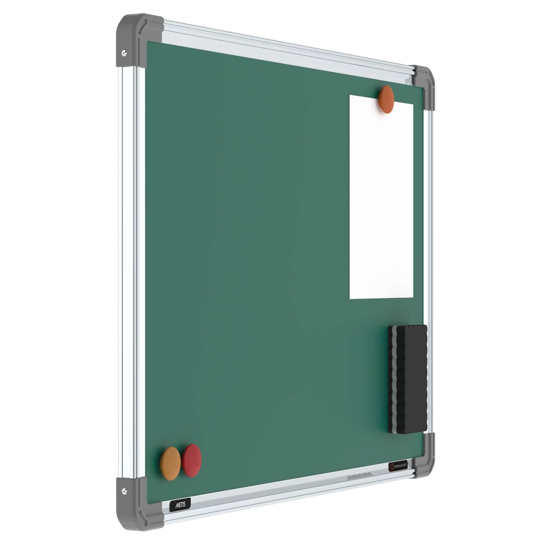 Scholar Art Magnetic Chalk Boards or Resin Coated Steel Chalkboards are premium-quality writing boards that consist of a resin coated steel (color coated steel) writing surface, that is especially designed for writing with chalk sticks by Scholar Art. As the name implies, the surface is magnet-friendly i.e. it can be used for applying magnets or magnet-impregnated objects (such as magnetic buttons) for holding accessories like dusters, markers, notes, charts etc.