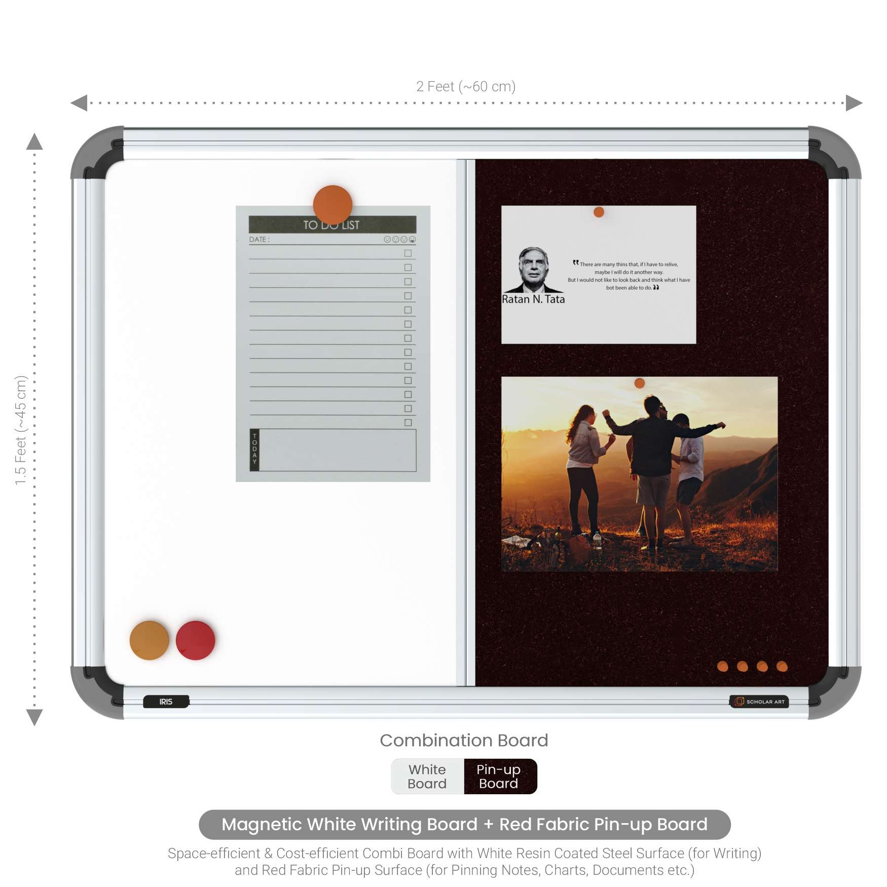 Weather-resistant, termite-proof, and low-maintenance, these boards are built to last and perform in a variety of settings — from homes and kitchens to offices, classrooms, and coaching centers. Whether you’re writing, pinning, planning, or teaching, Iris 2-in-1 Combination Boards help you stay clear, organized, and ahead of schedule.