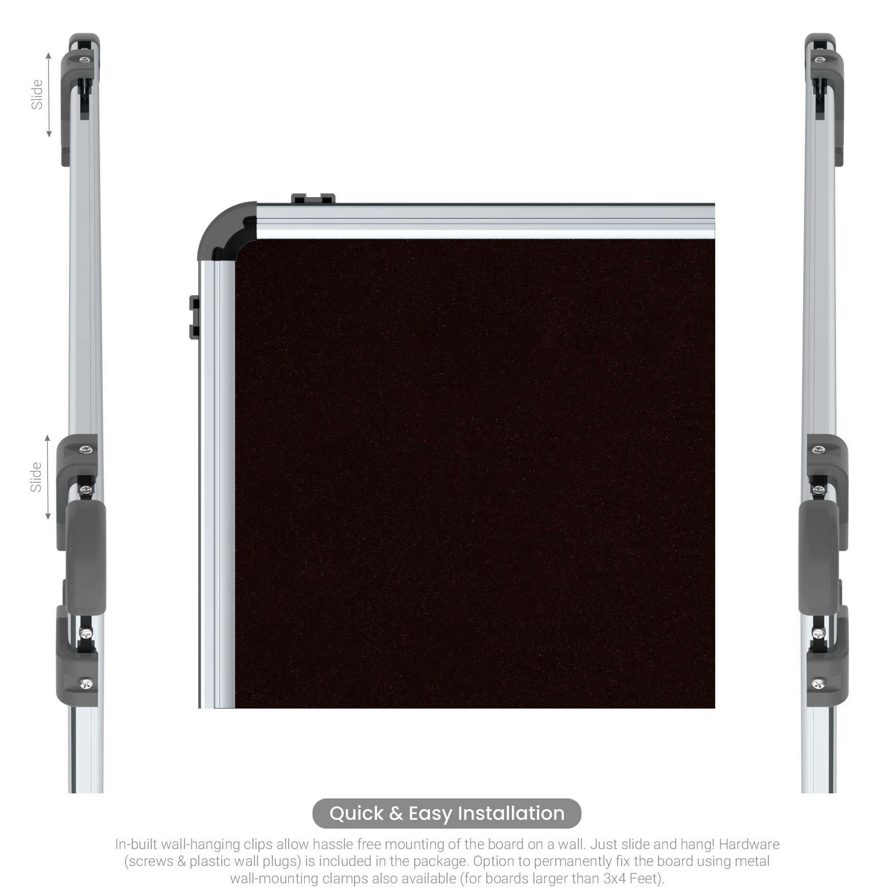 Each surface is engineered for durability and daily use. The whiteboard ensures superior erasability, flatness, and resistance to warping under changing temperature or humidity. The chalkboard variant offers smooth chalk flow and high visibility, while the pin-up surfaces are built for long-term strength — with the fabric being tear-resistant, odor-free, and fungi-resistant, and the cork providing a self-healing, eco-friendly tack surface.