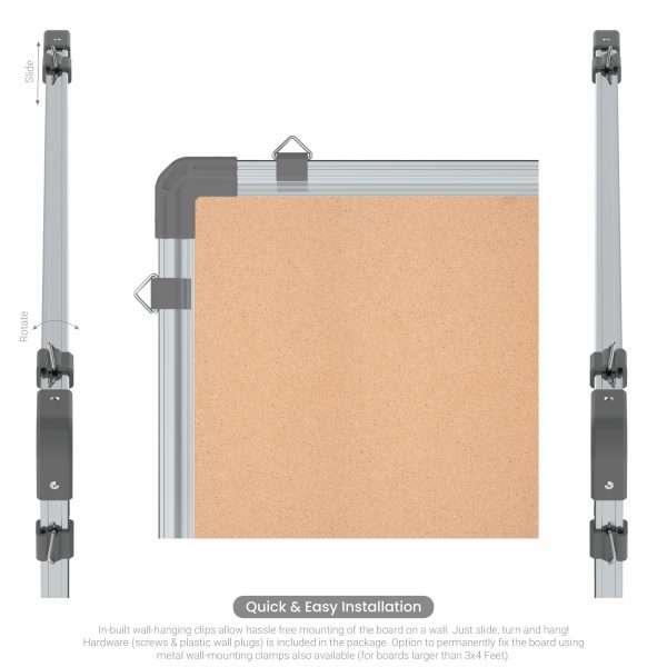 The cork sheet of our Cork Pinup Boards, Bulletin Boards & Notice Boards is carefully engineered to give it great tear-strength, tacking strength, odor-resistance and fungi-resistance, practically making the boards a life-long asset. The frame is built from alloy aluminium 6063-T6 sections with top-end anodizing, to impart unmatched bending strength and stiffness to the board. The corners are made up of injection-molded virgin ABS for a seamless finish and superior looks. The core is built from a medium-density Soft Board for applying pins, and to ensure that the documents are held onto the board’s surface securely and firmly, and do not fall-off on their own.