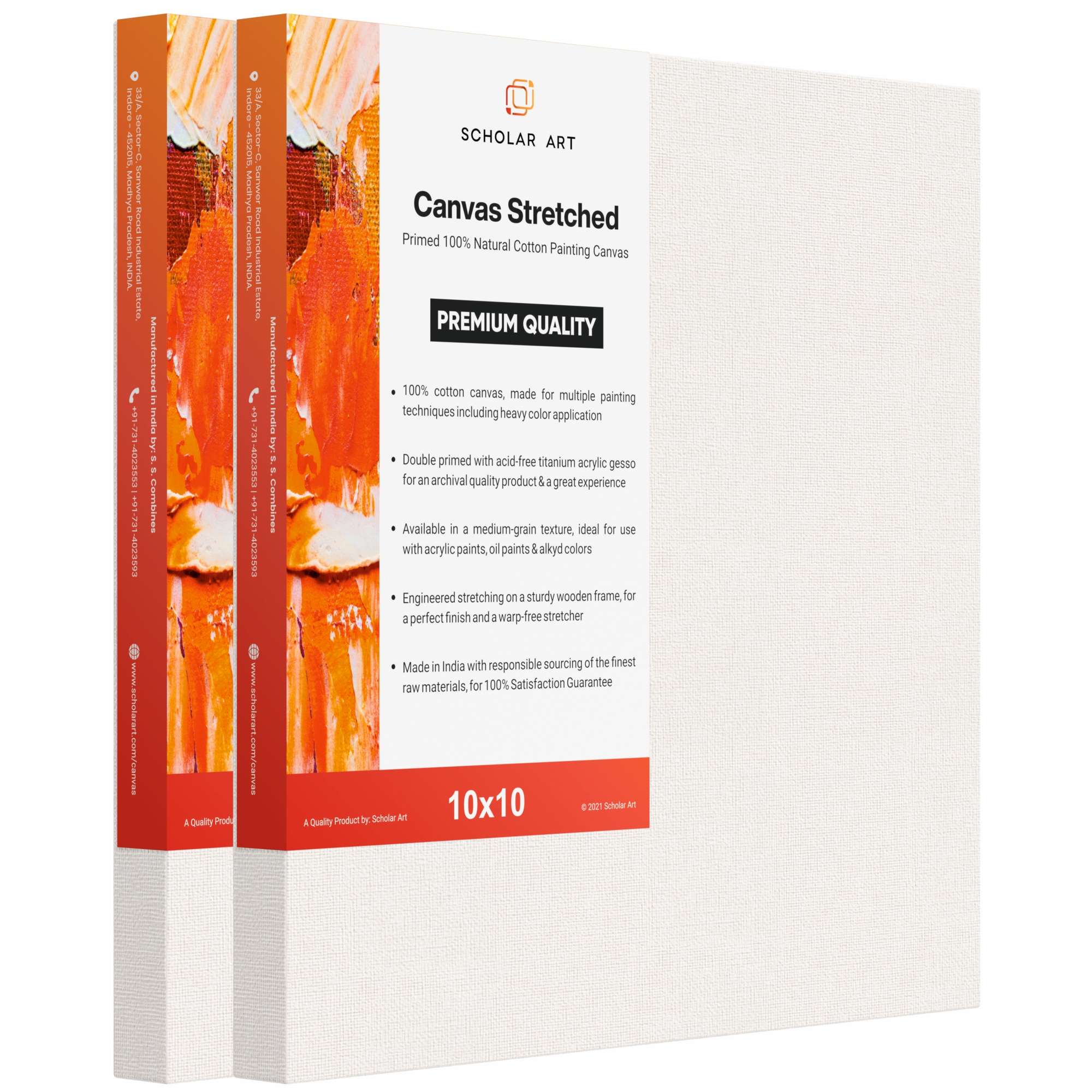 Artist Standard Series Stretched Canvas for Painting | Medium Grain 100% Primed Cotton Canvas (440 GSM) on 18×40 mm Wooden...