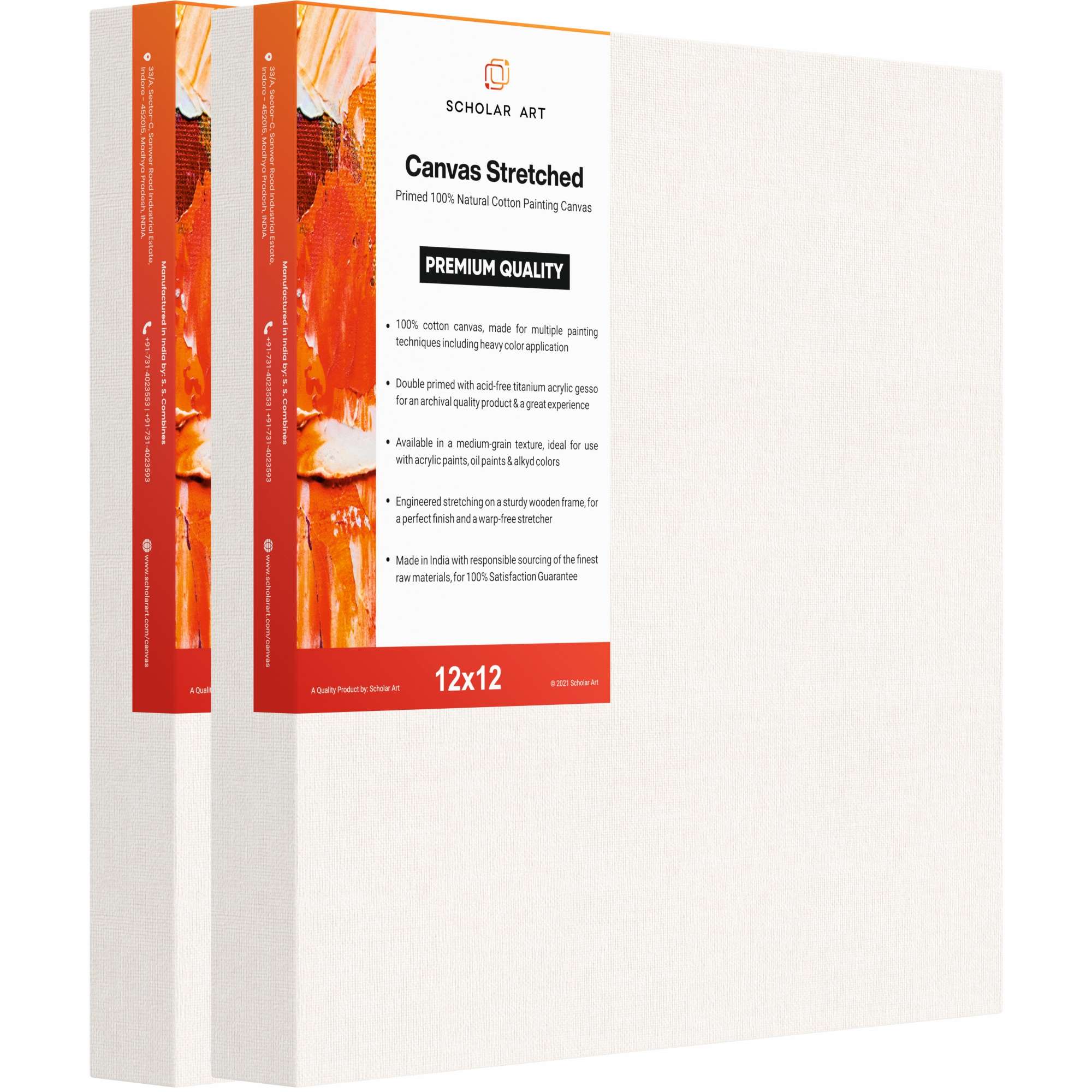 Artist Deep Edge Series Stretched Canvas for Painting | Medium Grain 100% Primed Cotton Canvas (440 GSM) on 35×40 mm...