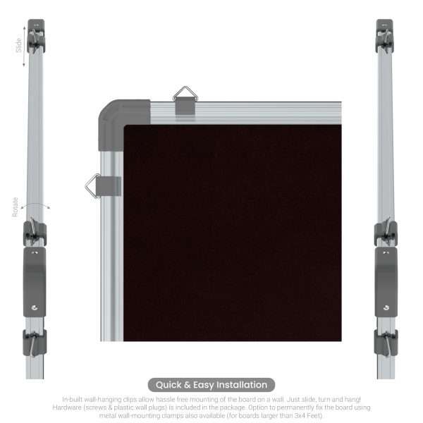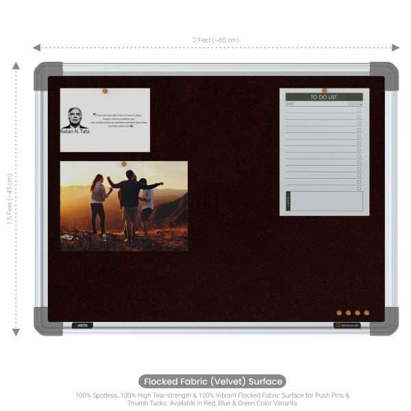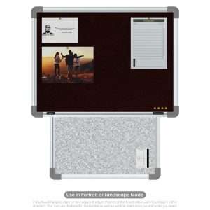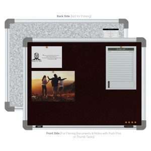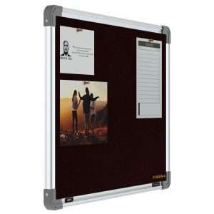 The fabric of our Pinup Boards, Display Boards and Notice Boards is carefully engineered to give it great tear-strength, tacking-strength, odor-resistance and fungi-resistance, practically making the boards a life-long asset. The frame is built from alloy aluminium 6063-T6 with top-end anodizing, to impart unmatched bending strength and stiffness to the board. The corners are made up of injection-molded virgin ABS for a seamless finish and superior looks. The core is built from a medium-density Soft Board for applying pins, and to ensure that the documents are held onto the board’s surface securely and firmly, and do not fall-off on their own.