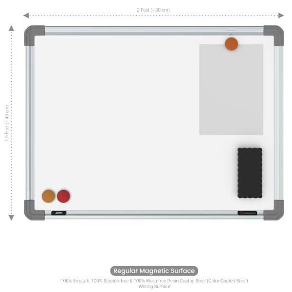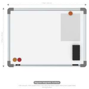 Scholar Art Magnetic White Boards or Resin Coated Steel Whiteboards are premium-quality writing boards that consist of a resin coated steel (color coated steel) writing surface, that is especially designed for writing with dry-erase whiteboard marker pens by Scholar Art. As the name implies, the surface is magnet-friendly i.e. it can be used for applying magnets or magnet impregnated objects (such as magnetic buttons) for holding accessories like dusters, markers, notes, charts etc.