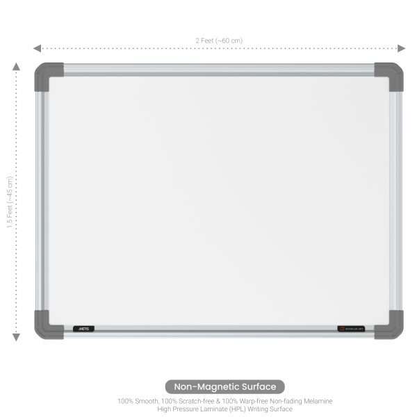 Scholar Art Non-magnetic White Boards or Melamine White Marker Boards are premium-quality writing boards that consist of a high-pressure laminate (HPL) writing surface, that is especially designed for writing with dry-erase whiteboard marker pens by Scholar Art. As the name implies, the surface is not magnet-friendly i.e. it cannot be used for applying magnets or magnet-impregnated objects (such as magnetic buttons) for holding accessories like dusters, markers, notes, charts etc.