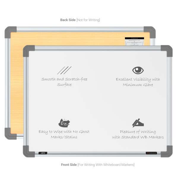 The frame is built from alloy aluminium 6063-T6 sections with top-end anodizing, to impart unmatched bending strength and stiffness to the board. The corners are made up of injection-molded virgin ABS for a seamless finish and superior looks. The core is available in the following four options – Thermocol (EPS), Paper Honeycomb (HC), Particle Board (PB) and Fibreboard (MDF) to give you the choice of buying from lightweight (EPS and HC) or heavy-duty (PB and MDF) boards, depending on your need. Scholar Art Non-magnetic White Boards are extremely robust, sturdy and long-lasting with a non-fading, non-corrosive, weather-proof, termite-proof and low-maintenance surface. Hence, these whiteboards are ideal for kids, home, kitchen & students.